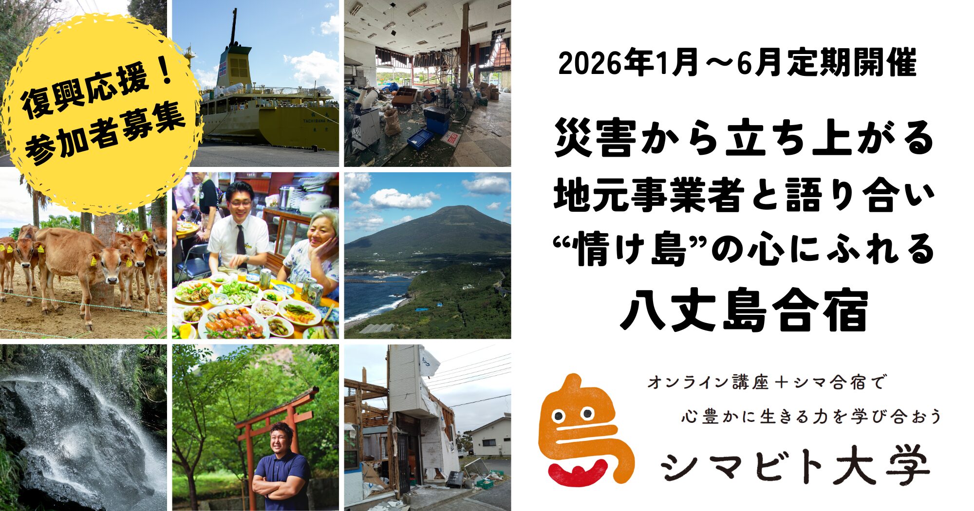 離島経済新聞社(リトケイ)は、2025年10月台風により被害を受けた八丈島・青ヶ島の事業者を応援する緊急支援プロジェクト第3弾「シマビト大学 in 八丈島」を、2026年1月からスタート。離島経済の早期復興と、未来につながる支え合いの関係づくりを共に支える受講生を募集します。