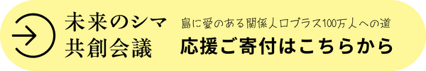 一口5万円のご寄付(最大50%が寄付控除の対象となります)で、「未来のシマ共創会議」および「島に愛のある関係人口プラス100万人」キャンペーンを支える関係人口に仲間入りいただけませんか?
