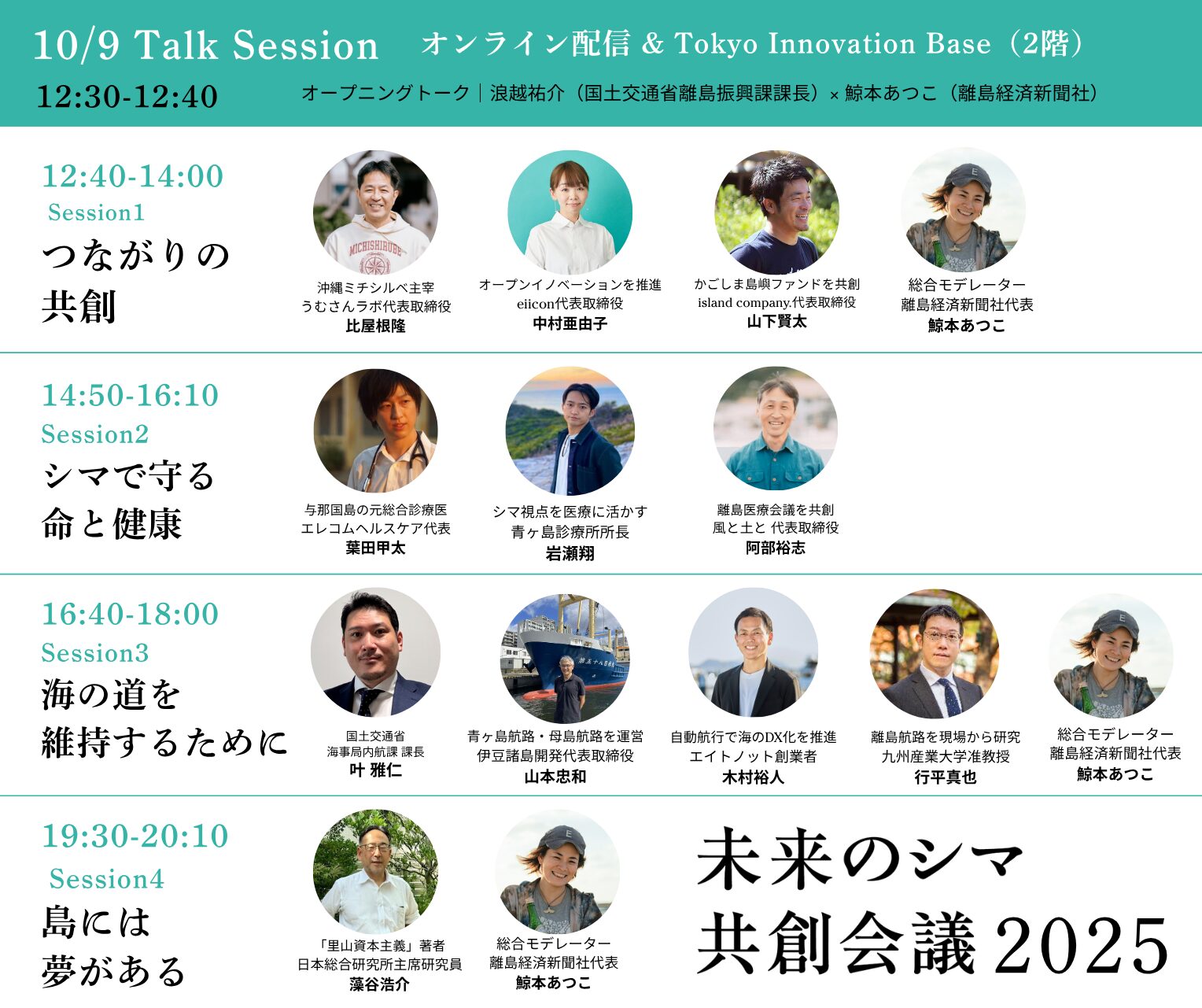 本ページにて「未来のシマ共創会議2025」10月8日特別セッションおよび10月9日各種コンテンツについてご案内いたします(随時更新)。