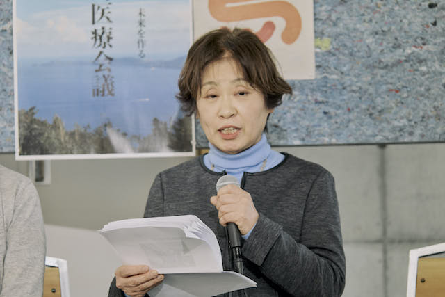 住民の立場からもお話しします。11年前に、病気知らずだった夫がステージ4のがんを宣告されました。仕事や地域活動を続けながら治療をしたいと言う本人の希望を叶えてもらい、海士診療所で3週間ごとの抗がん剤治療を受けながら4年間の闘病生活を続け、自宅での看取りも支えていただきました。