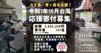 認定NPO法人離島経済新聞社では、令和7年10月台風で被災した八丈島・青ヶ島を応援する緊急支援募金の受付を開始(寄付控除対象)。一般社団法人アットアイランドと連携し、被災された事業者の事業継続および再開の糧となる支援金を迅速に届けます。どうか温かいご支援をお願いします。
